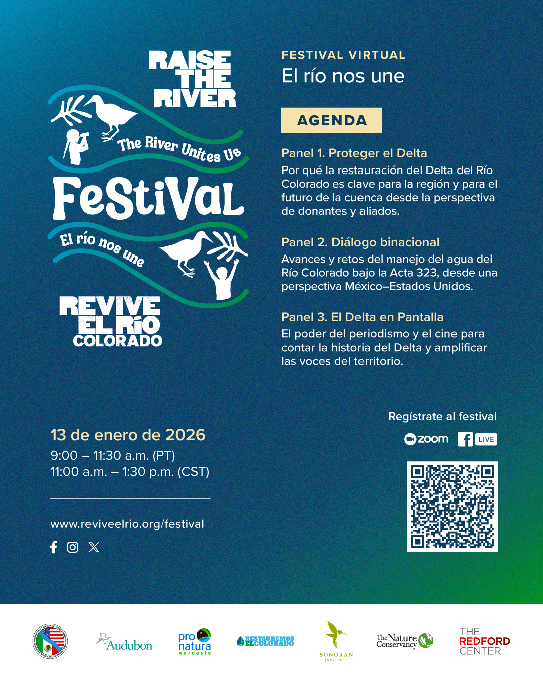 ¡Así se vivió el Festival Revive el Río 2024: A 10 años del Flujo Pulso! Las conversaciones y eventos del Festival 2024 destacaron la colaboración entre las organizaciones miembro de la Alianza y socios clave, lo que demuestra cómo el trabajo en equipo está devolviendo agua y vida al Delta del Río Colorado.