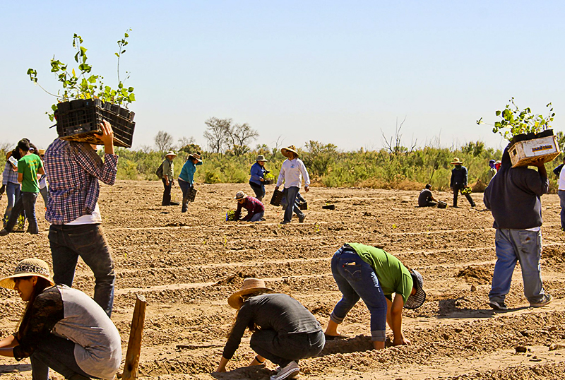El Valle de Mexicali es una de las regiones agrícolas más productivas de México. Se cultivan más de 50 variedades que se distribuyen en América del Norte y en todo el mundo. La Alianza  Revive el Río Colorado colabora con la comunidad agrícola para garantizar que el agua llegue al Delta, ayudando a financiar la instalación de revestimientos de canales de riego y otras medidas de conservación del agua.